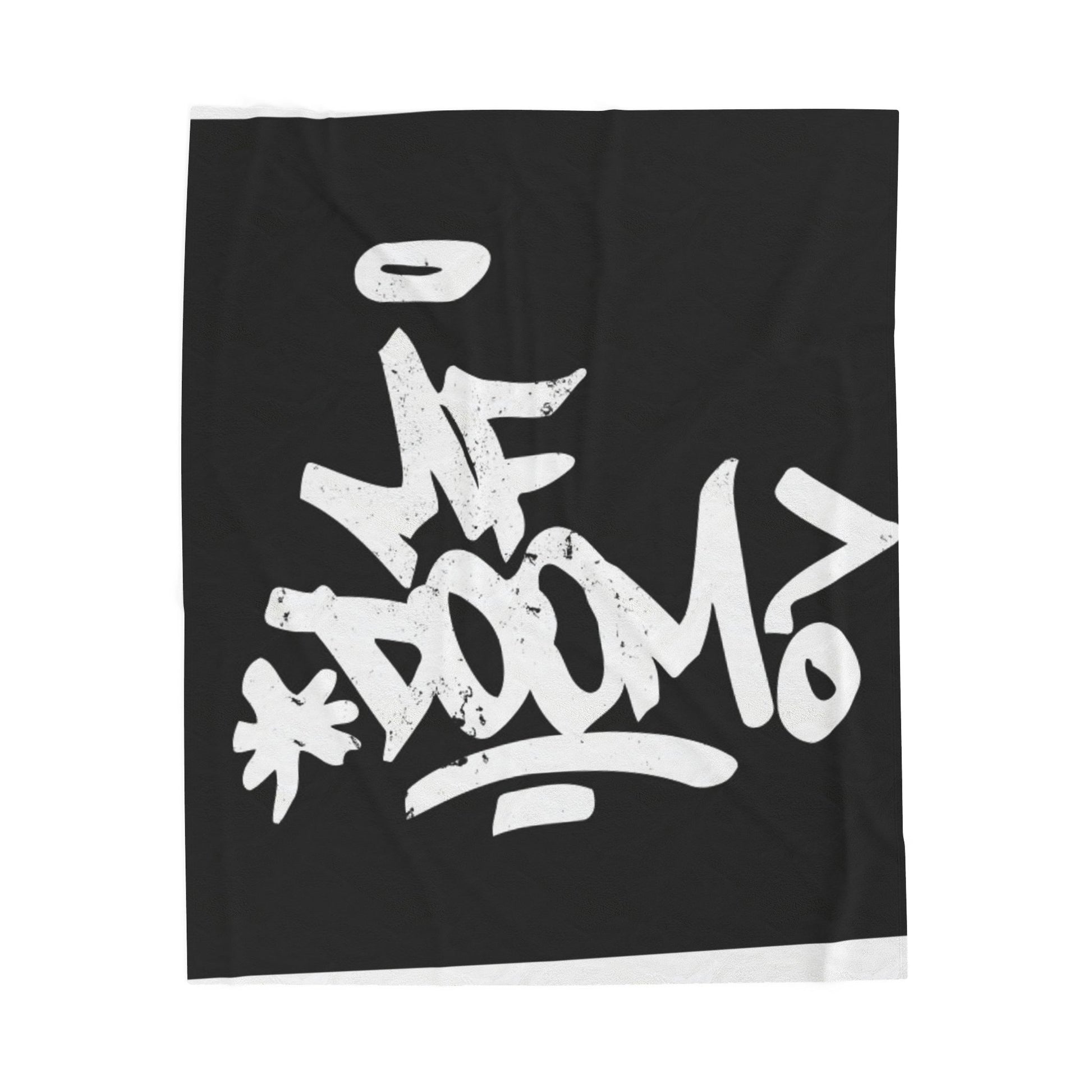 Velveteen Throw Blanket — Bold Graffiti "MF Doom" Design, Soft Plush Black & White Cozy Accent